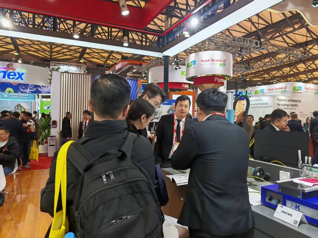 展会第一天,佛山翁开尔小伙伴为来访客户详细介绍了产品性能与应用场景,现场演示设备操作,并就实际生产中的具体问题进行了针对性解答,与每一位来访客户共同探讨涂料行业的相关技术问题。