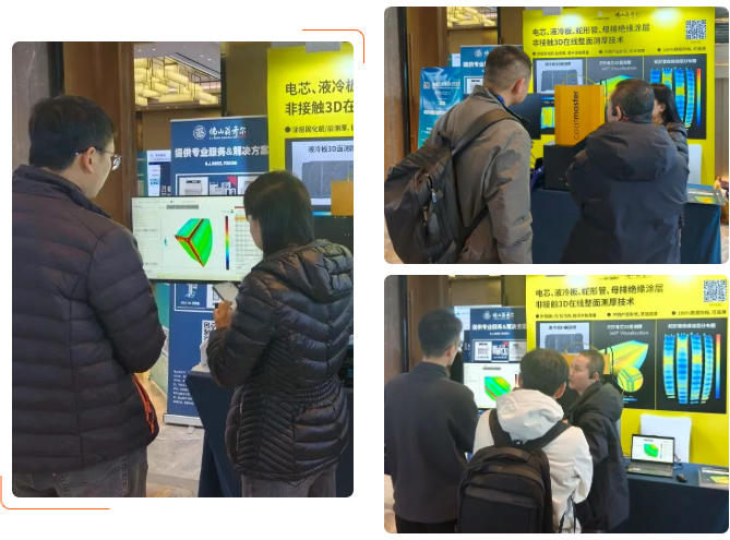 会议期间,佛山翁开尔与coatmaster涂魔师重点演示了3D整面测厚技术在电芯,水冷板等部件的非接触无损高精度测厚效果,和与会专家围绕技术细节与应用场景进行了深度探讨。