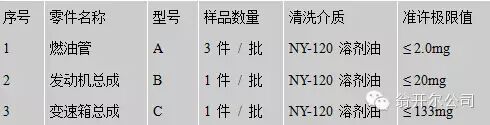 重量法典型限值:对特定规格的零件,规定一定样品数量、检查频率、清洗介质、清洗和过滤方法的情况下准许的最大残留污物的重量,单位为mg或ug。如: