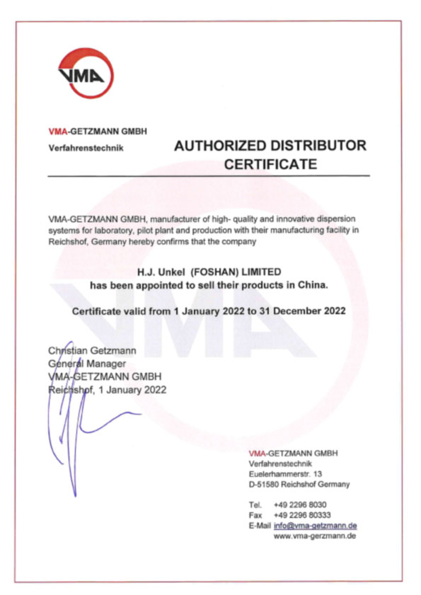 德国VMA-Getzmann公司与中国翁开尔公司达成合作协议,翁开尔公司成为德国VMA Dispermat高速分散研磨设备的中国代理商。如需了解更多关于德国VMA Dispermat进口分散机,欢迎咨询。